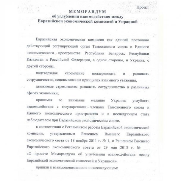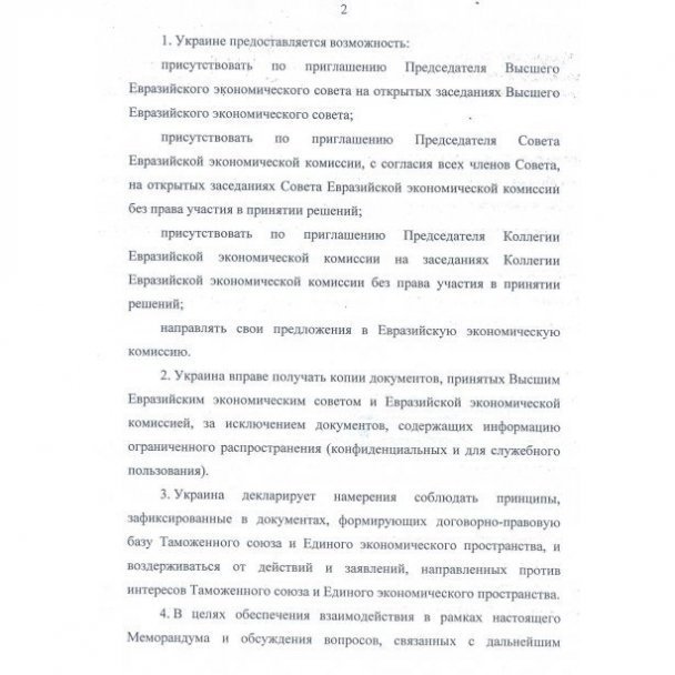 Якщо документ на знімках справжній, то він передбачає, що представники від України, як спостерігачі, матимуть право бути присутніми на відкритих засіданнях Вищої євразійської економічної ради, Ради Євразійської економічної комісії та колегії Євразійської економічної комісії.