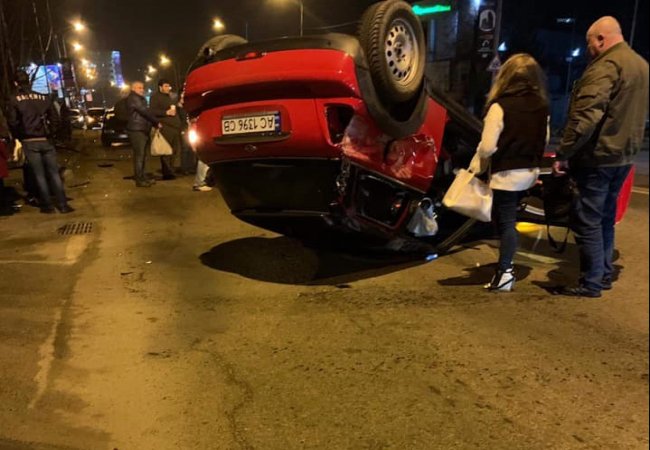 Серед Львова перекинулася автівка на волинських номерах, а її водій вчинив бійку. ФОТО. ВІДЕО