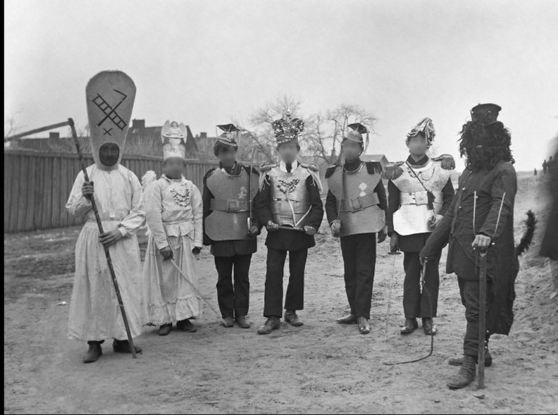 Такі світлини є справжньою рідкістю. На них можна побачити дітей та молодь переодягнену спеціально для різдвяного вуличного вертепу. Серед героїв вертепу на фото присутні чорт, ангели, воїни, смерть. Костюми продумані до дрібниць, хоча видно, що їх робили із того, що було під рукою, - пишуть Хроніки Любарта