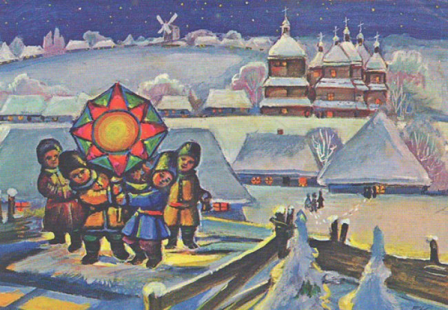 На фото зображений живий вертеп — вертепне дійство, де ролі виконують люди. Це більш пізня форма у порівнянні з вертепним ляльковим театром. Учасники вертепу готують заздалегідь релігійну виставу, розподіляють ролі, вчать віршовані тексти, шиють костюми.