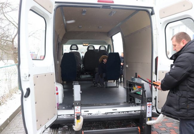 Автомобіль відповідає усім вимогам щодо перевезення діток з особливими потребами. Він обладнаний спеціальним підіймачем для осіб, які мають порушення опорно-рухового апарату, у салоні передбачені сидіння з ременями безпеки.