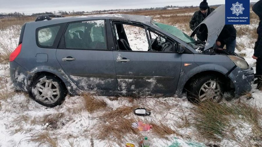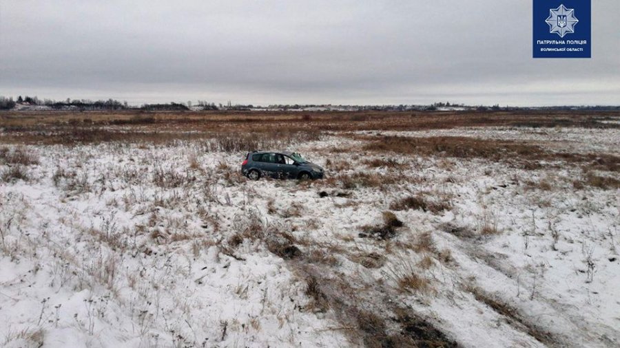 На Волині через ожеледицю автівка злетіла у кювет: водія госпіталізували. ФОТО