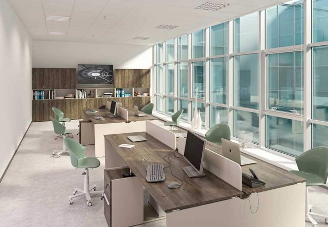 Головне завдання обстановки для офісу - створення в приміщенні гранично ділової атмосфери, але не на шкоду працівникам. Також всі предмети повинні бути багатофункціональними, бажано - взаємозамінними, мобільними і компактними, місткими і міцними. М'які стільці і крісла для офісів виробляються III і IV класу м'якості, тому повинні бути комфортними, не викликати втоми протягом робочих годин, але і занадто розслабляти ця продукція не повинна давати. Розробки компанії дозволяють трансформувати більшість продукції, тому низькі ціни тут недоречні, але упор робиться на якість і довговічність.