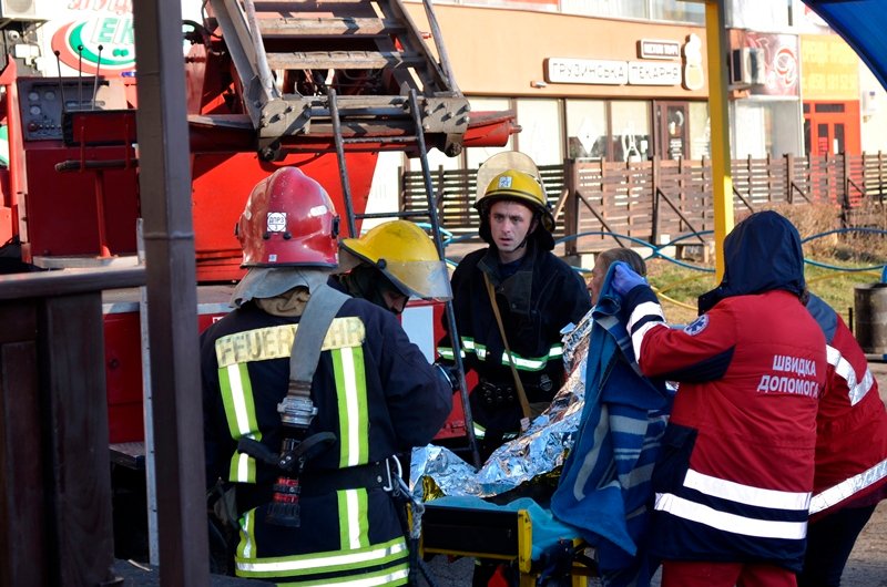 Рятувальники встановили пожежну автодрабину для евакуації господарки помешкання, де трапилась пожежа – людина встигла вийти з охопленої вогнем квартири на балкон. Звідти її й евакуювали. Пенсіонерку госпіталізували до медичного закладу.
