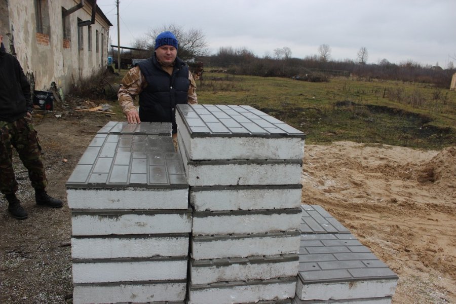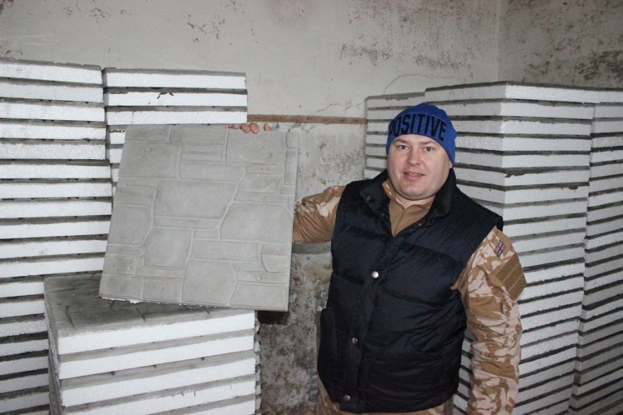 «Щоправда, грунтовно цим зайнявся вже коли повернуся з АТО, — каже Валентин Шеремета. — Набридли випадкові підробітки, тож вирішив розпочати власну справу. Спершу експериментував вдома. Купив кілька форм, зробив перші зразки. Поступово знайшлася клієнтура. З кожного прибутку купував нові форми, збільшуючи квадратуру, яку можна було б виробляти за раз. Нині працюємо в орендованому приміщенні. Наш колектив невеличкий: окрім мене — це четверо хлопців, двоє з них — теж учасники АТО. До речі, одна із принципових позицій — мої працівники мають бути офіційно працевлаштовані, щоб їм йшов стаж, який потім вплине на пенсійне забезпечення».