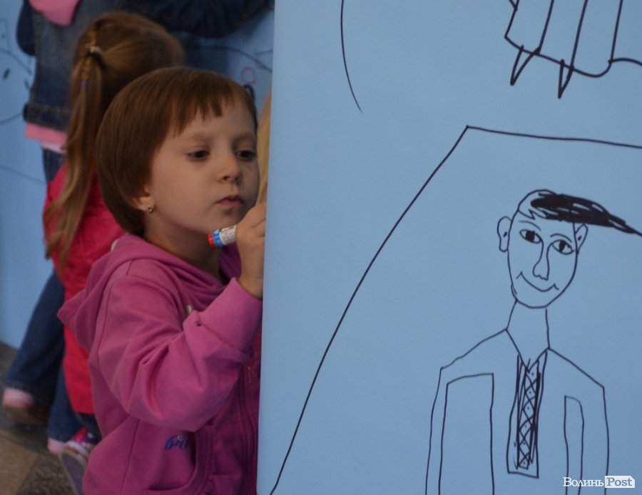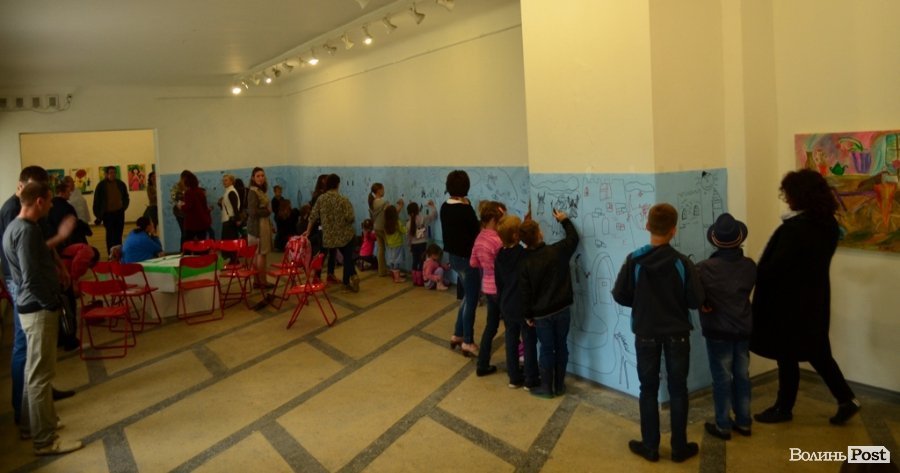 Родзинкою виставки стало 15-метрове полотно, яке розмальовували діти різного віку. Їхня мета – показати своє бачення Луцька.
