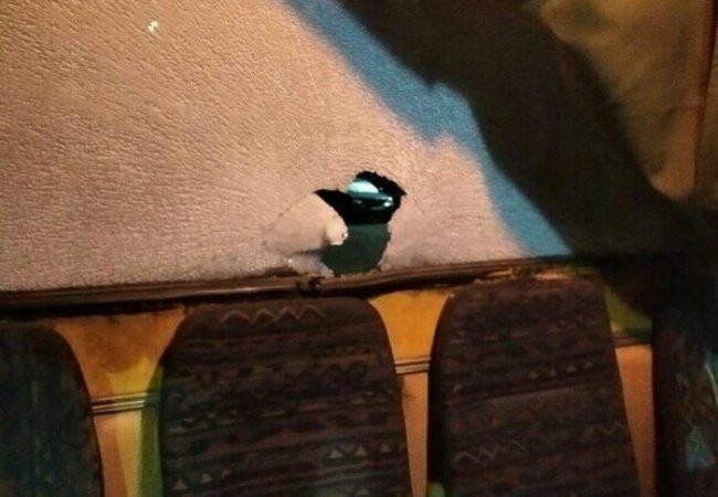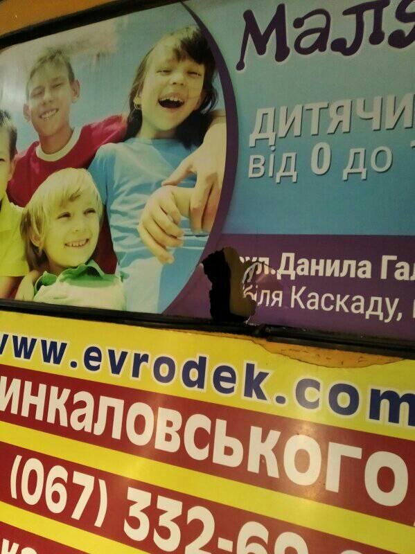 "Під час від'їзду від кінцевої зупинки "Цукровий завод", невідома поки що особа кинула велику каменюку в заднє скло, при цьому пошкодивши,скло,каркас", - йдеться у дописі.