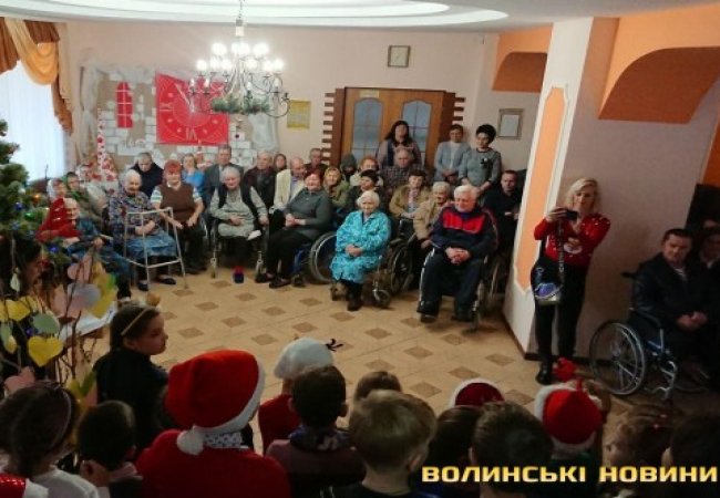 Учні Луцької гімназії № 21 імені Михайла Кравчука концертом та подарунками привітали жителів геріатричного пансіонату із новорічно-різдвяними святами. Діти співали, розповідали гуморески та частували смаколиками людей похилого віку.