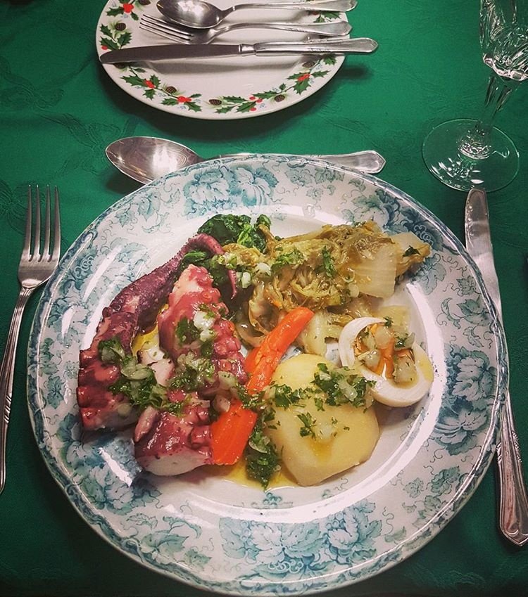 У Португалії вечеря напередодні Різдва називається «consoada» і складається з bacalhau (висушена солона тріска), відвареної картоплі, варених яєць, відвареної цибулі, відвареного нуту, відвареної капусти та іншої зелені, политих оливковою олією і соусом з нарізаної сирої цибулі, часнику і петрушки. Іншою традиційною стравою є polvo à lagareiro (восьминіг на грилі) і batatas a murro (товчена картопля, яка запікається в духовці з часником, петрушкою й оливковою олією).