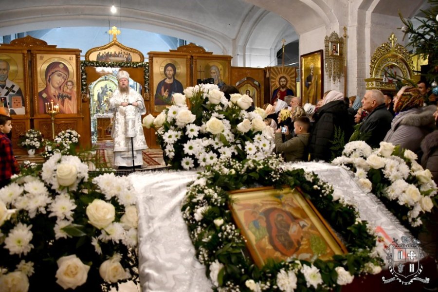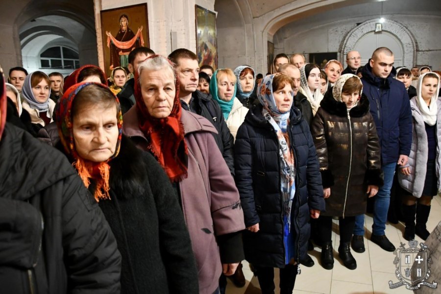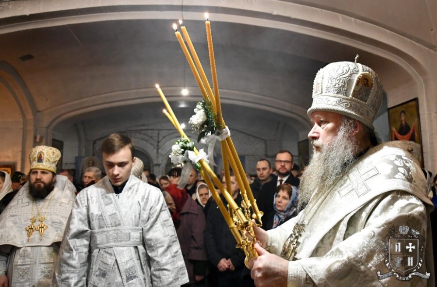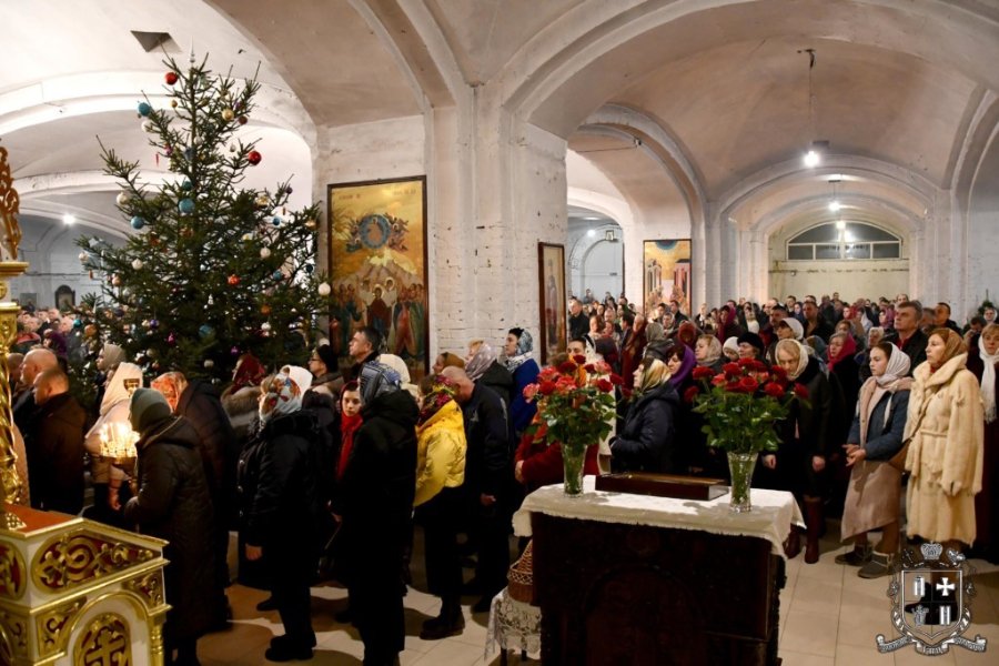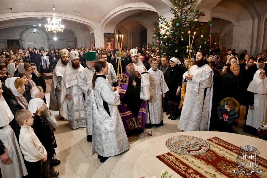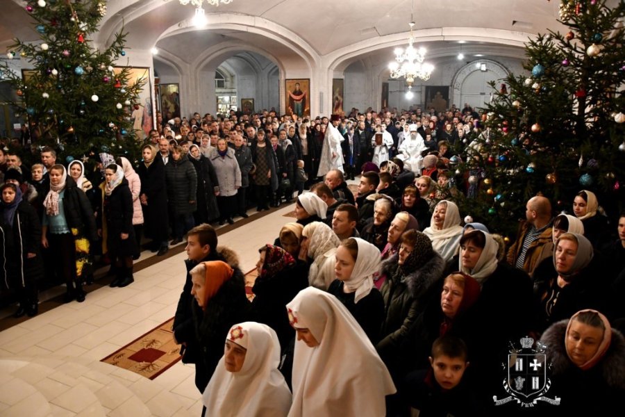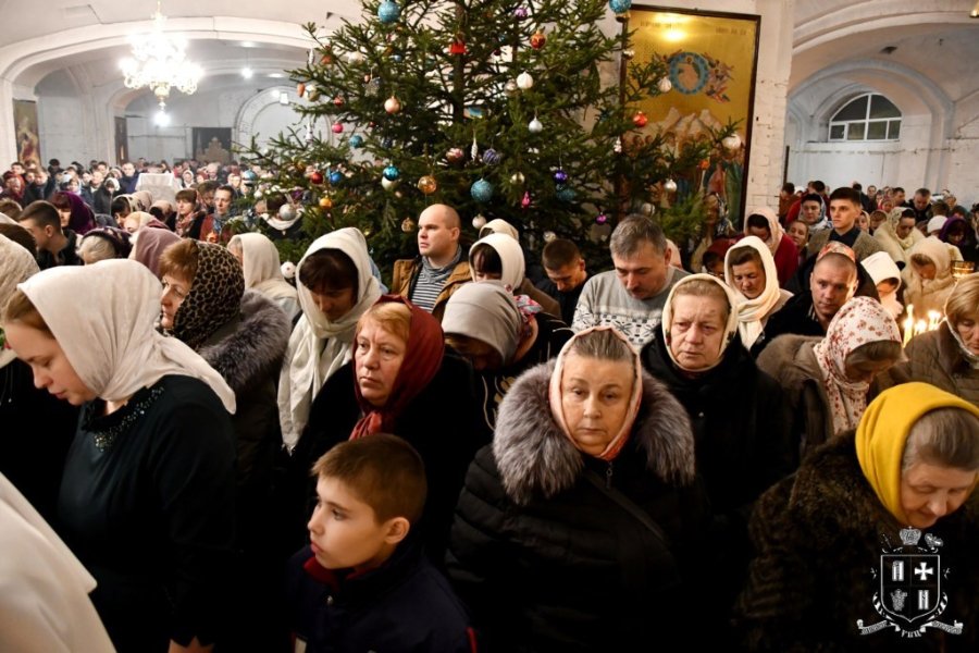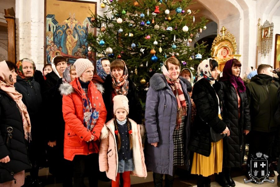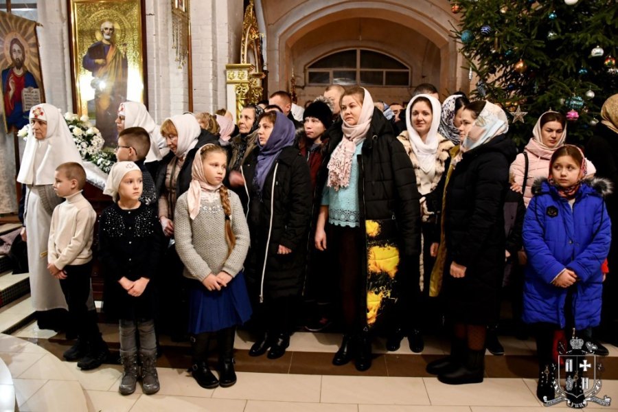 На завершення богослужіння перед іконою Різдва Христового відбувся чин славління, після якого архієпископ Волинський і Луцький Нафанаїл привітав усіх присутніх з великим святом – Різдвом Господа Бога і Спаса нашого Іісуса Христа.