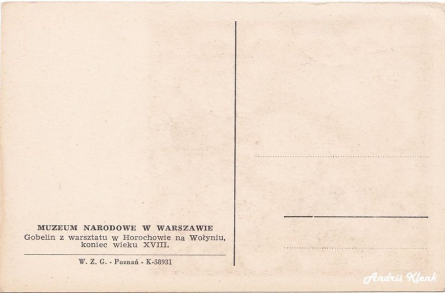 Дописувач поділився світлиною листівки 1930-х років, де зображений експонат з Національного музею у Варшаві — горохівський гобелен.