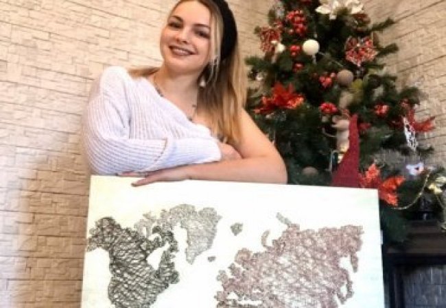 Ірина розповідає, що почала займатися таким незвичним мистецтвом зовсім випадково. «Вперше взяла до рук цвяхи та нитки, коли переїхала у новий будинок. Вирішила сама зайнятися дизайном, хотіла, аби це було щось незвичайне та нове. Почала пошуки в Інтернеті, натрапила на цю доволі цікаву техніку і вирішила спробувати. Так з’явилася моя перша картина – карта світу».