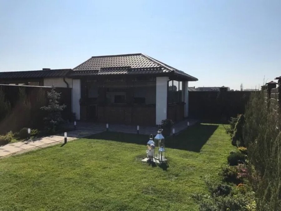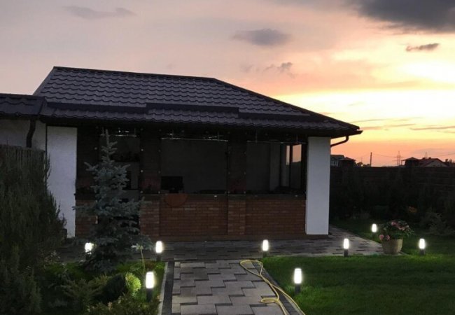 Перед входом у танхаус є місце для автомобіля, а позаду – територія для відпочинку із виходом на терасу. Також на ділянці вже збудована альтанка.