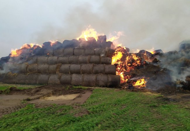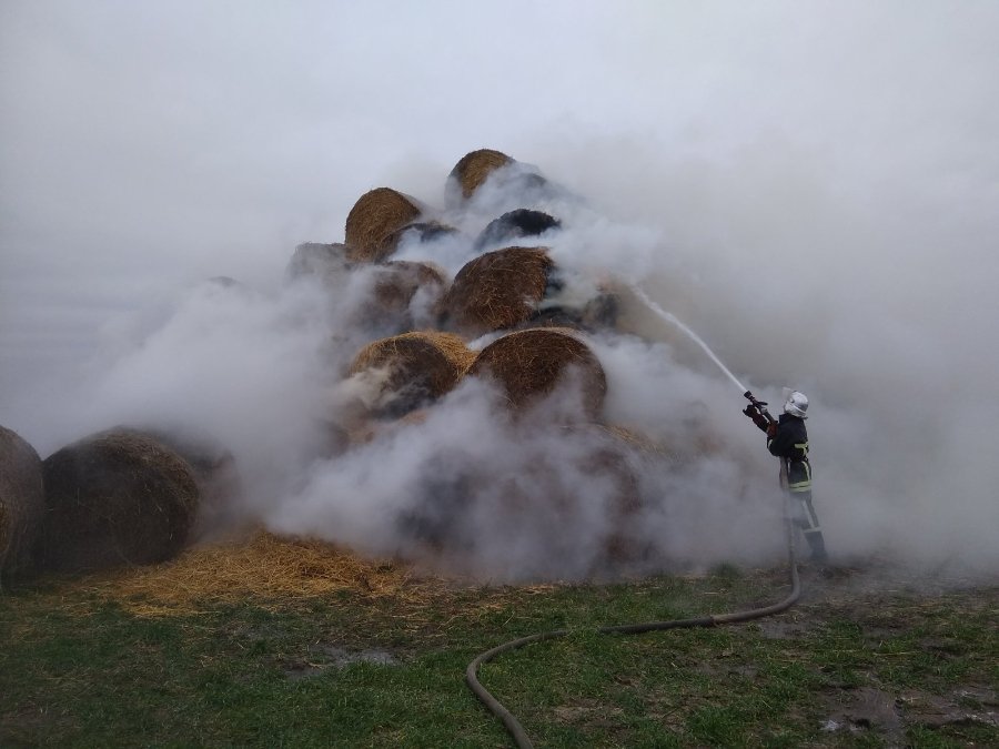 У селі на Волині посеред поля горіли стоги тюкованої соломи. ФОТО