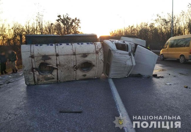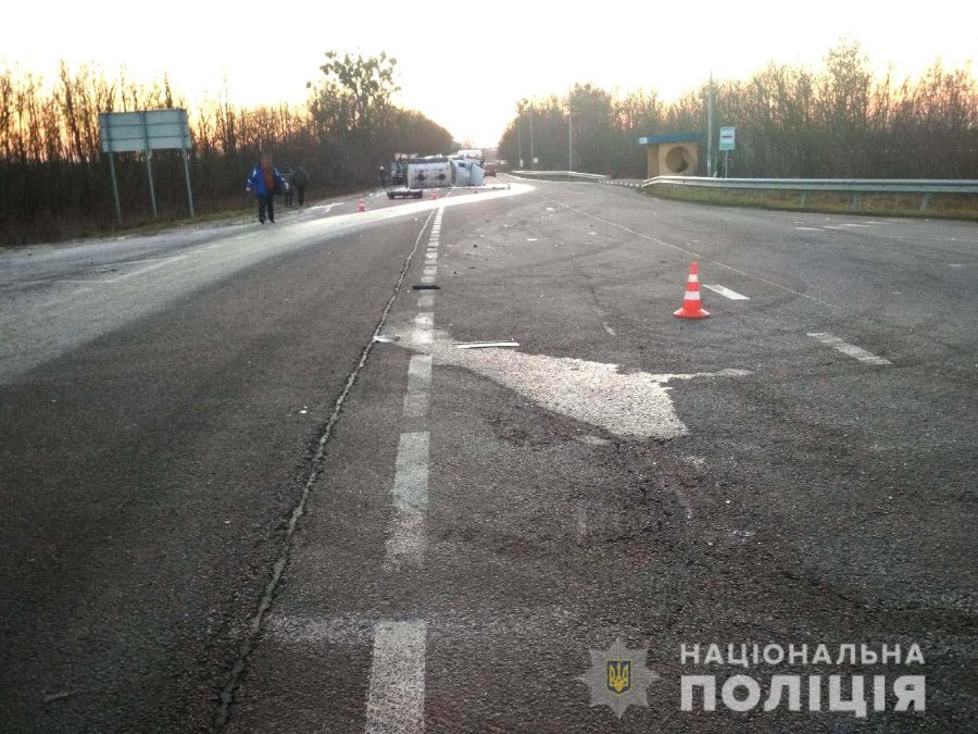 На автодорозі «Київ-Чоп» зіткнулися молоковоз та легковик: останнього відкинуло у кювет. ФОТО