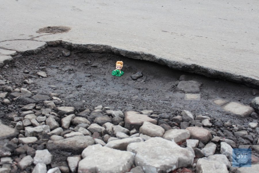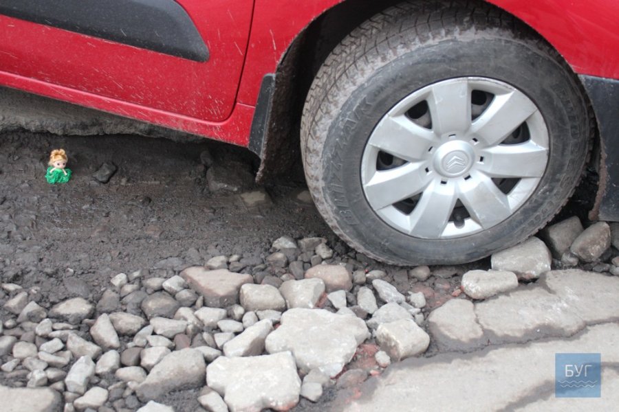 А нещодавно на вулиці, що слугує виїздом з АЗС утворилася величезна яма, у яку втрапляє чи не кожне авто.