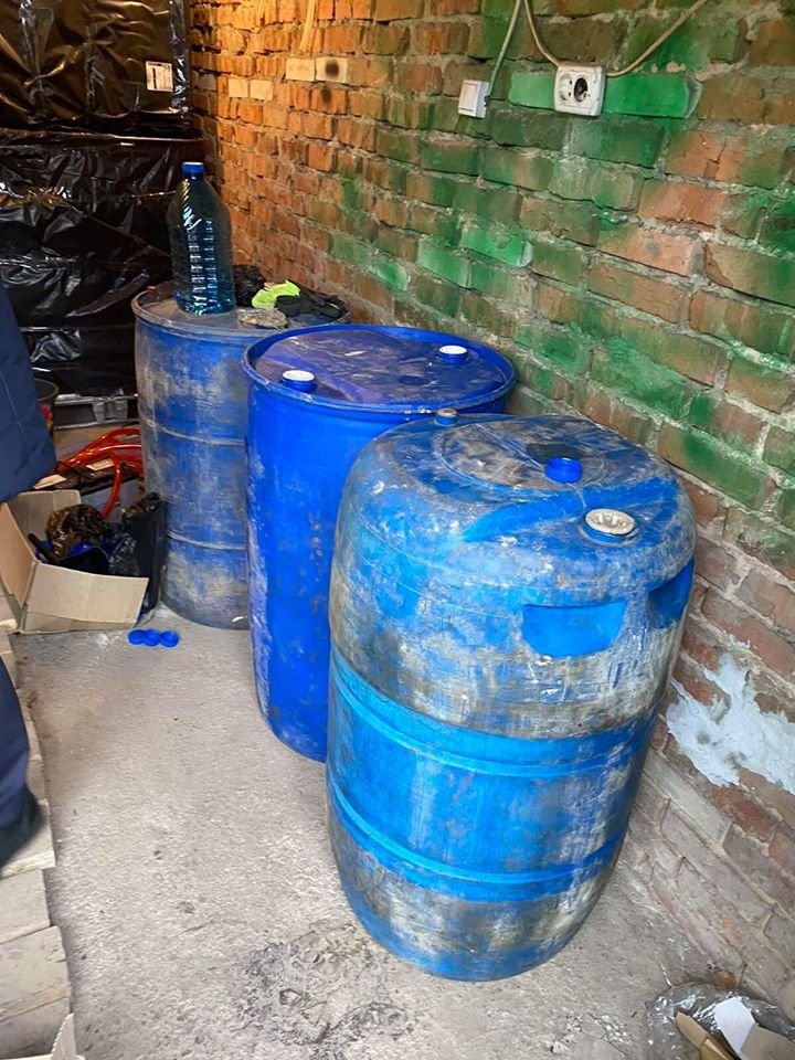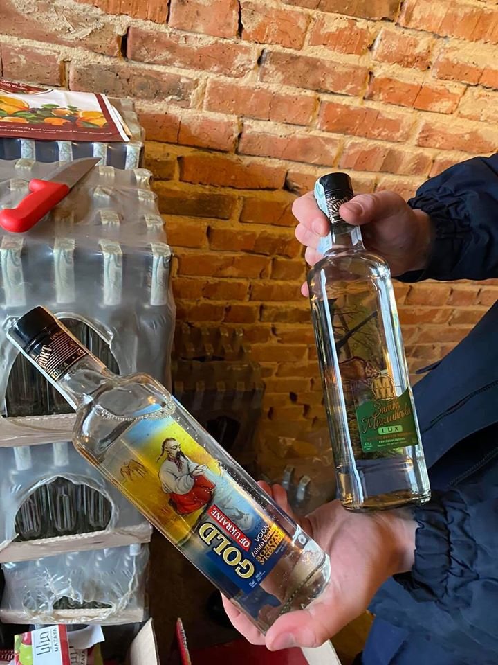 У ході огляду приміщення цеху в межах кримінального провадження, розпочатого за фактами незаконного виготовлення, зберігання, транспортування з метою збуту і збуту підакцизних товарів та незаконних дій з марками акцизного податку загалом вилучили понад 600 літрів підготовлених до розливу спиртових сумішей, 52 ящики горілки різних найменувань з акцизними марками, які відрізняються від тих, що перебувають в законному обігу, обладнання для виготовлення і розливу алкоголю і 300 кілограмів контрафактного тютюну для куріння кальяну. Вартість вилученого становить понад 1,3 мільйони гривень.