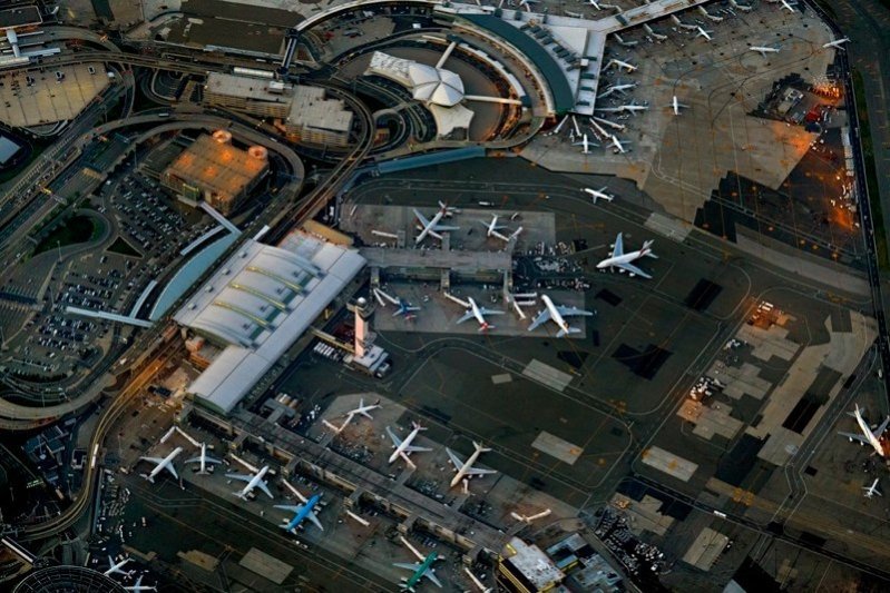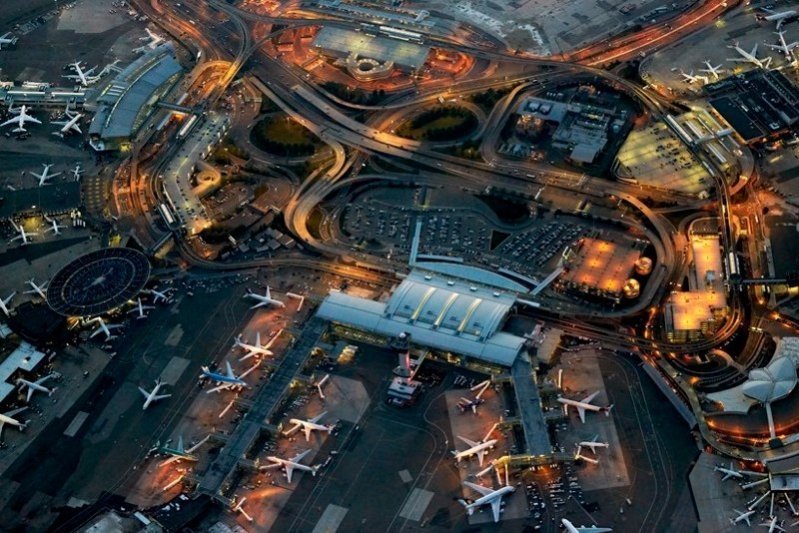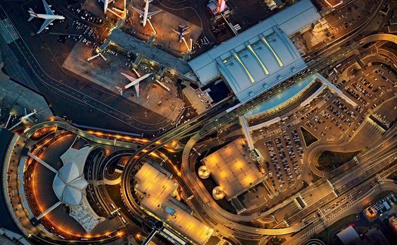 Як виглядають аеропорти з неба показав фотограф Джеффрі Мільштейн. З висоти величезні термінали, довгі злітні смуги і величезні літаки виглядають такими акуратними і маленькими, майже іграшковими.