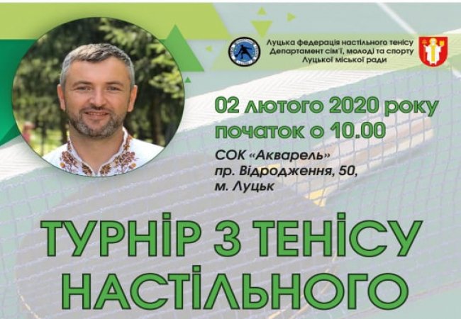 У Луцьку відбудеться турнір з настільного тенісу пам'яті загиблого директора департаменту сім'ї, молоді та спорту міської ради Олексія Веремійчика.