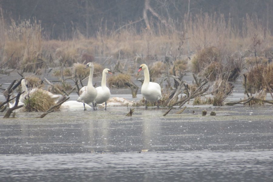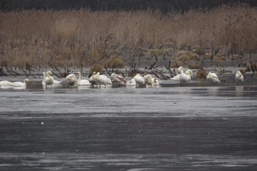 На Волині на водосховищі річки Путилівка (Мочулки) під час моніторингу птахів працівники нацпарку виявили велику зграю лебедів.