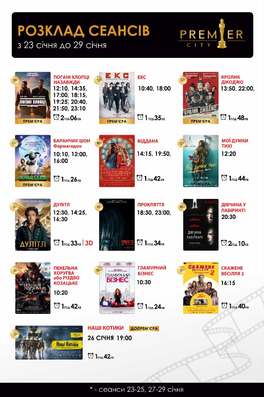 Пропонуємо розклад сеансів з 16 до 22 січня в кінотеатрі «PremierCity», що у ТРЦ «ПортCity».