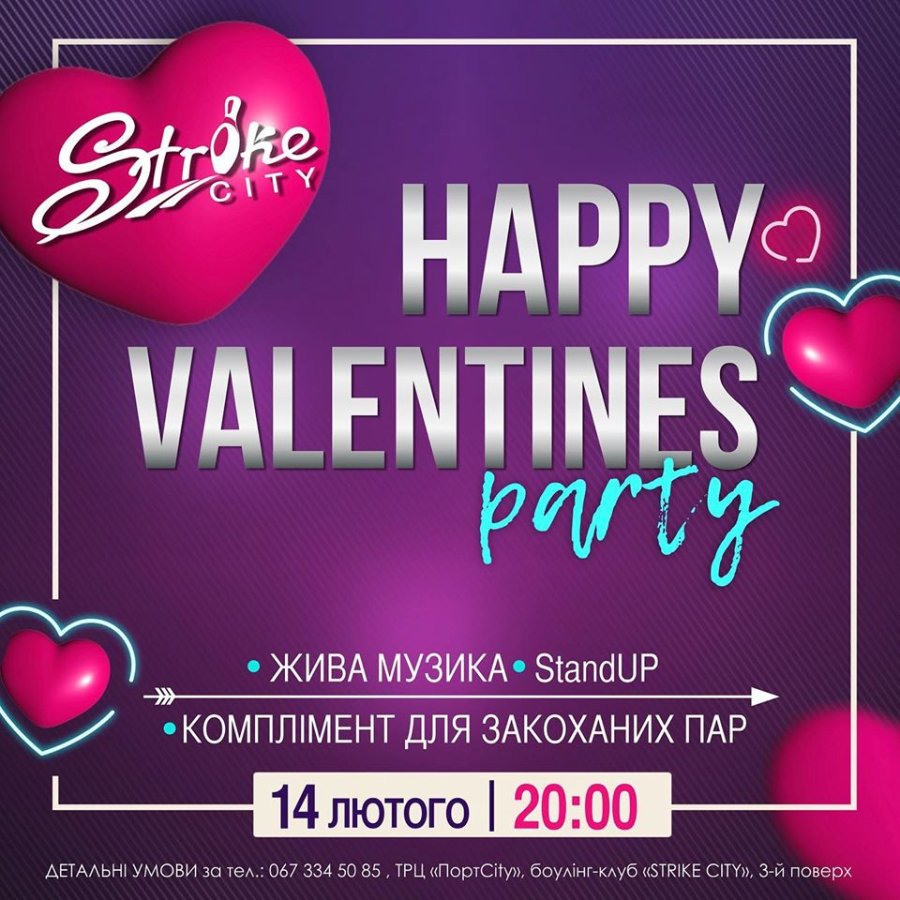 На День закоханих в боулінг-клубі StrikeCity влаштовують «Happy Valentines рarty»*