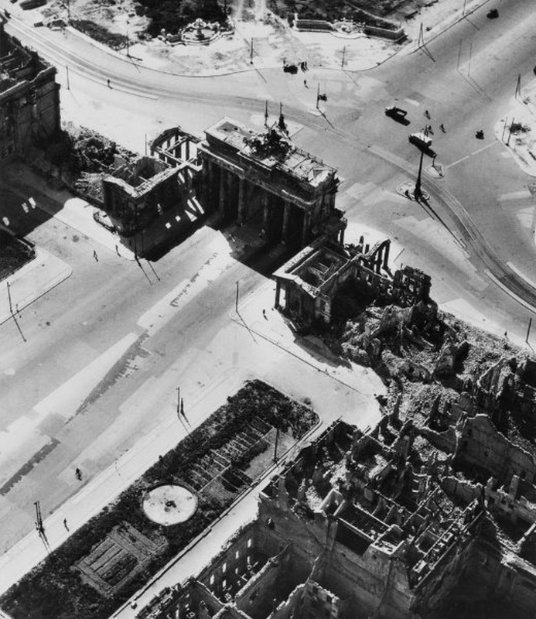 Паризька площа: величні будівлі навколо площі в 0,61 га на схід від Бранденбурзьких воріт дуже постраждали під час нальотів. Праворуч на фото ‒ руїни колишнього палацу Макса Лібермана.