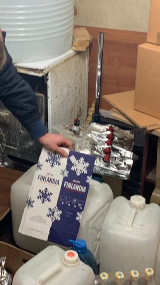 У Луцьку ж, у цеху, де виготовляли й розливали контрафактний алкоголь, видаючи його за елітні напої відомих брендів на кшталт «FINLANDIA», вилучили близько 350 літрів готової алкогольної продукції, сировини для її виготовлення, а також обладнання для здійснення незаконної діяльності.