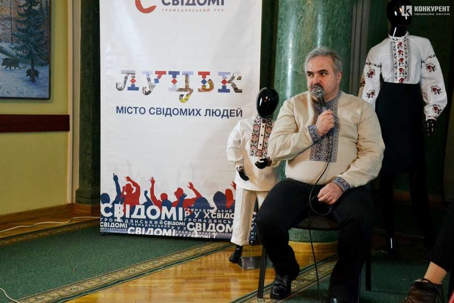 «Нам дуже приємно, що ви знайшли час і бажання прийти на цю зустріч. Вона унікальна, тому що ми намагаємося робити такі зустрічі з відомими людьми, які формують образ нашого чудового міста. Одним із завдань Громадянського Руху «СВІДОМІ» є розвиток Луцька. І цей розвиток полягає у тому, що в місті має бути достатньо робочих місць, мають заходити інвестиції. Завдяки таким людям, як-от Юрій Анатолійович, який сьогодні є нашим гостем, Луцьк знають у всій Україні і за кордоном», – звернувся Михайло Наход.