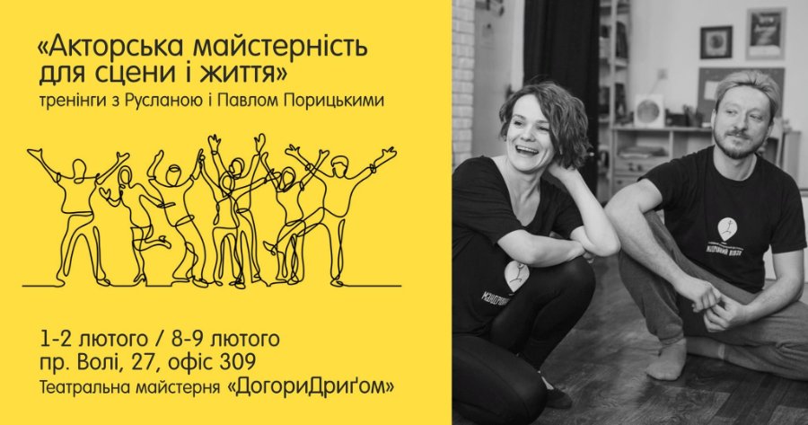 Що обіцяють: Дводенний авторський тренінг «Акторська майстерність для сцени і життя» (1-2 лютого або 8-9 лютого) присвячений розкриттю та розвитку акторських навичок, які дозволять впевнено триматися у різних життєвих ситуаціях, бути почутими за будь-яких обставин та яскраво себе позиціонувати. Цей досвід буде корисним при будь-яких публічних виступах та виходах на умовну чи реальну сцену.