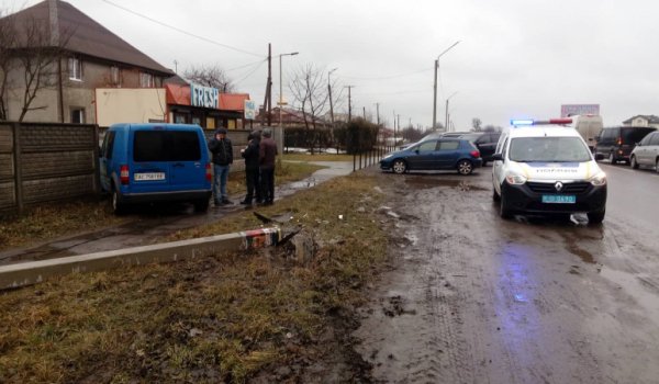 У Нововолинську водій легковика збив опору та протаранив огорожу. ФОТО