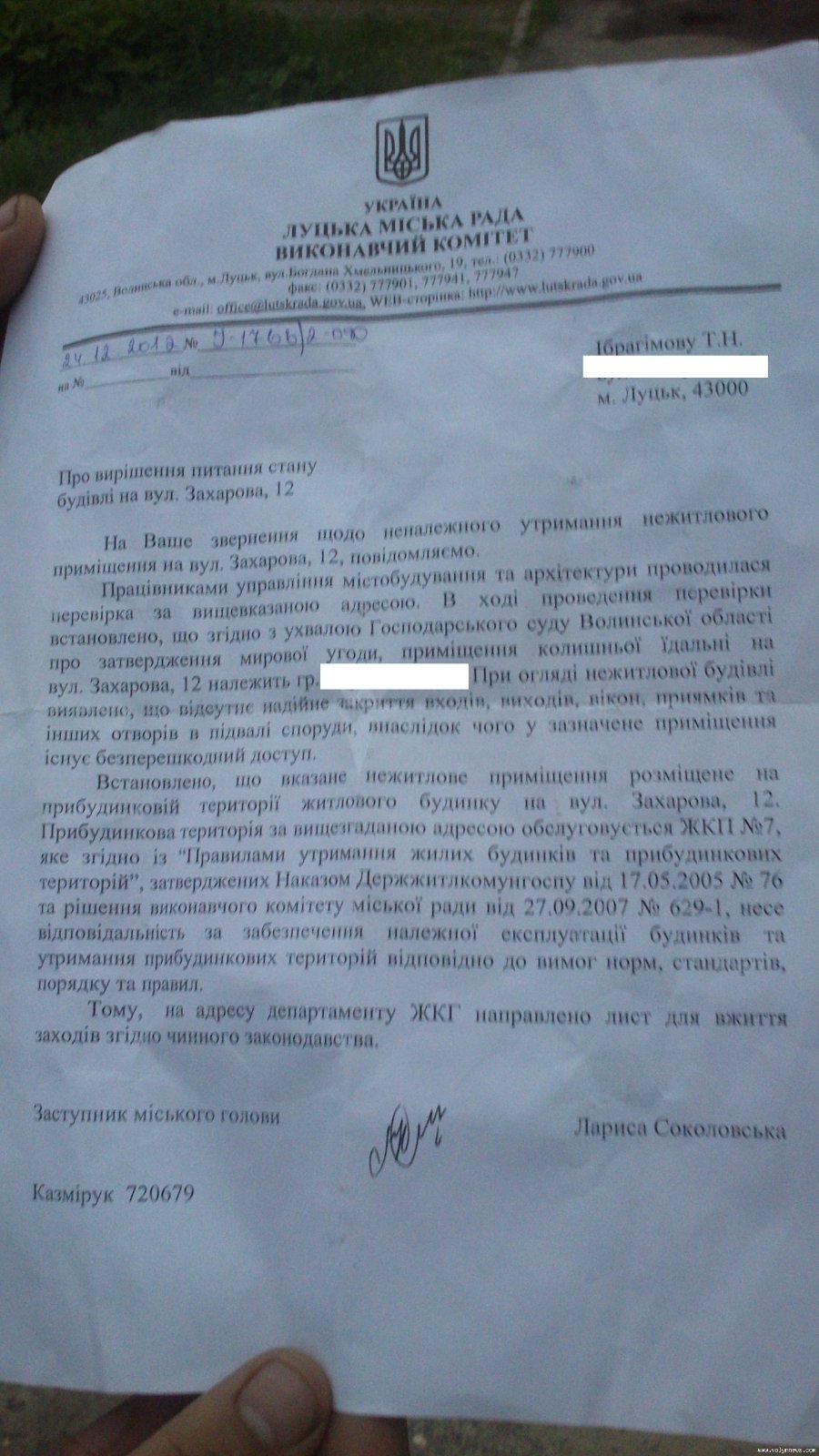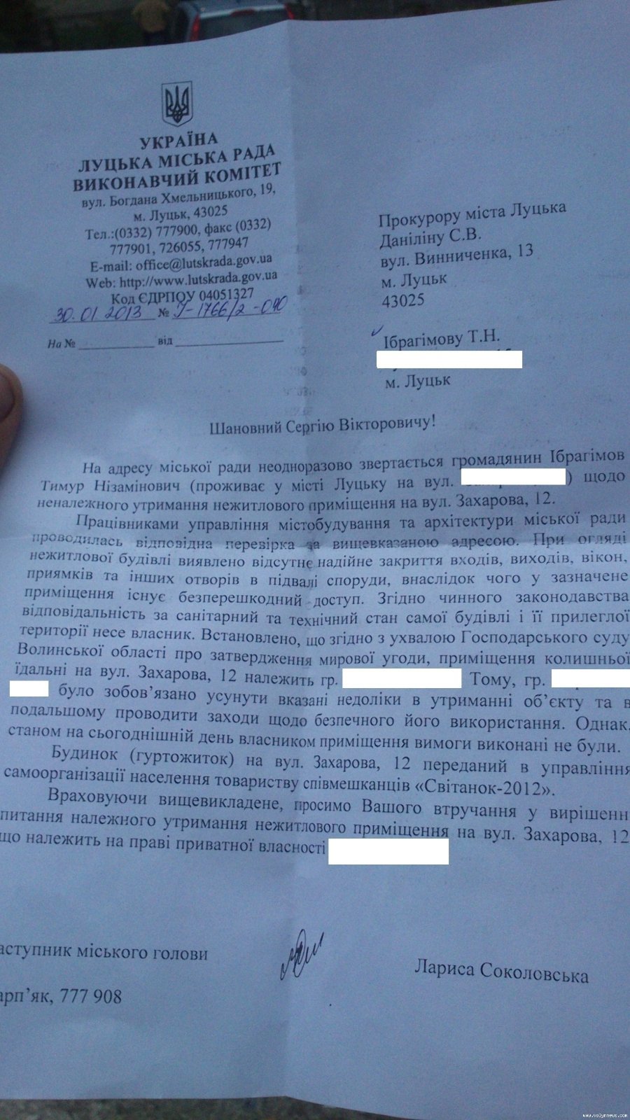Тімур Ібрагімов надав копії документів, які отримав на свої звернення до СЕС та Луцької міськради.
