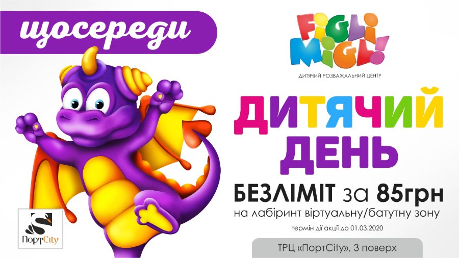 Щосереди у дитячому розважальному центі "Figli Migli" – день шаленого безліміту. Це найвигідніший день тижня для розваг. Вартість веселощів у лабіринті, віртуальній та батутній зоні – всього 85 гривень.