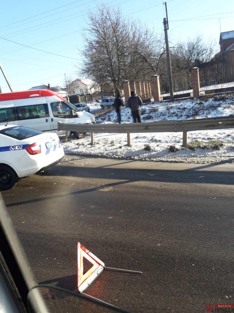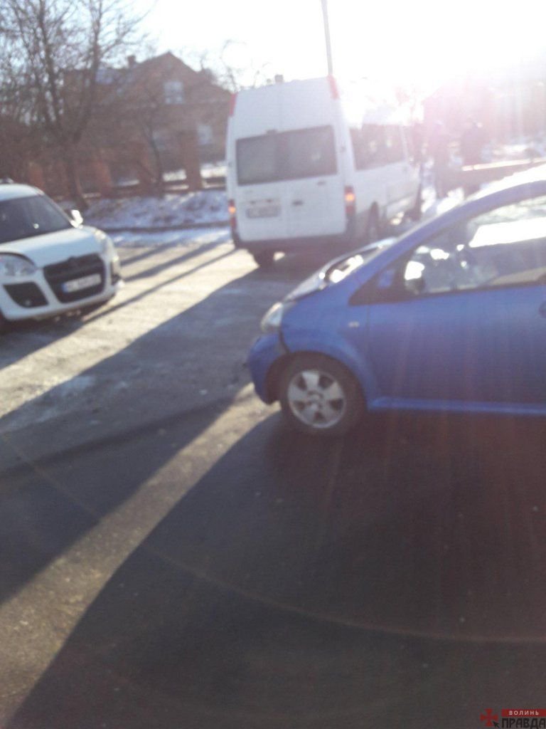 У Луцьку через ожеледицю зіткнулись дві автівки. ФОТО