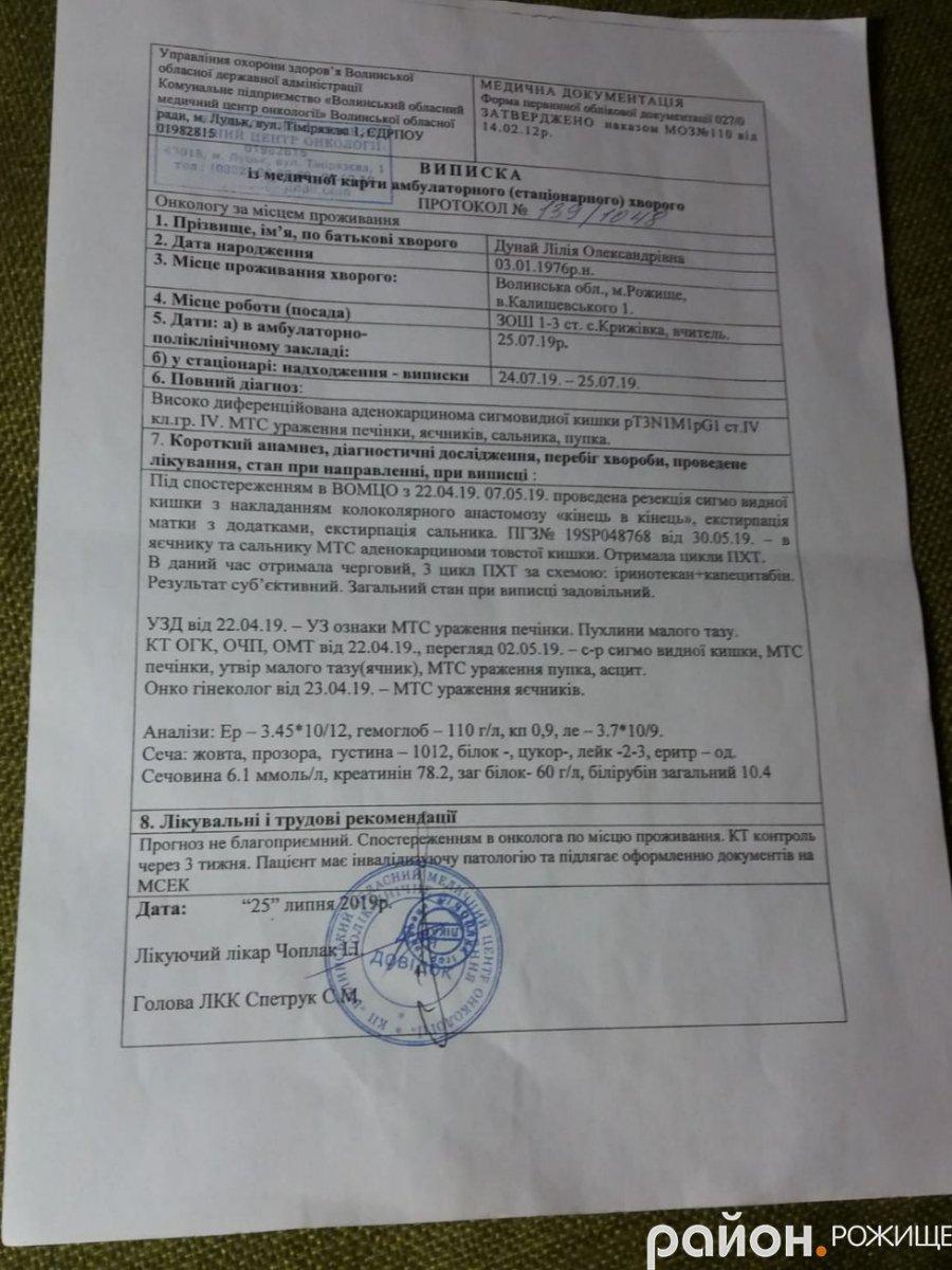 Жінка виховує двох дітей. Вона вже давно бореться із онкохворобою, тож вичерпалися усі фінансові можливості, - пише Район.Рожище.