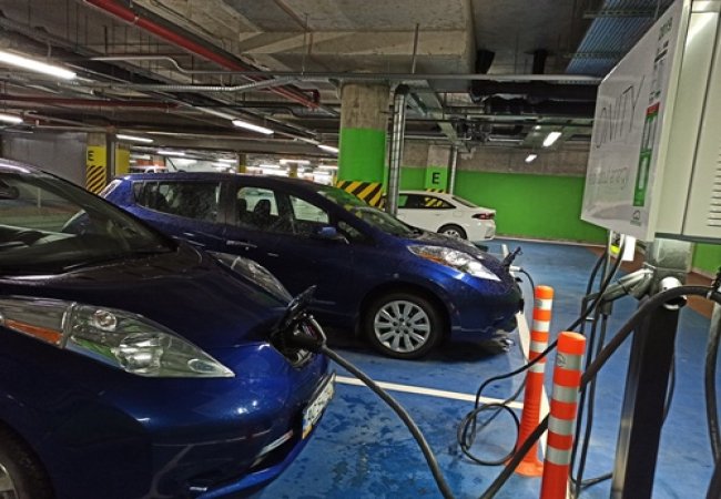 Зарядна станція знаходиться у підземній парковці ТРЦ у секторі «Е».