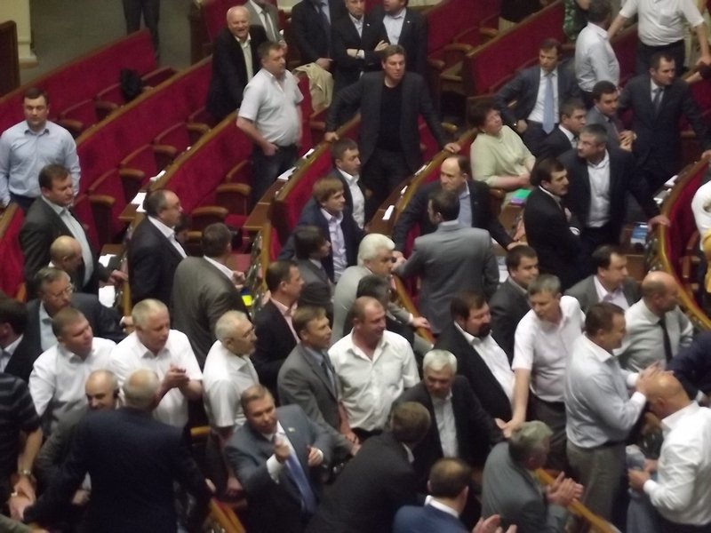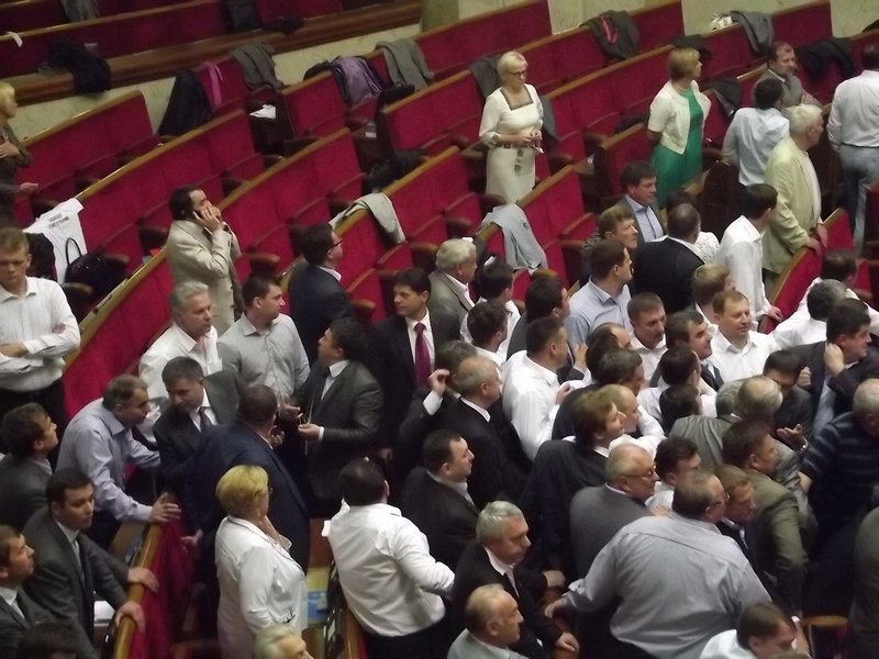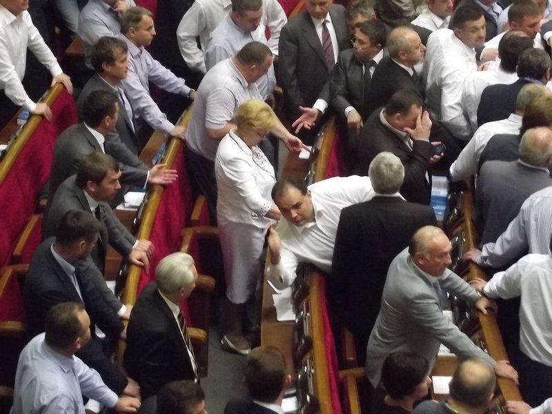 Опозиція перешкоджала «регіоналам», які голосували за 2-3-х депутатів, що було дуже добре видно з ложі преси. Однак, непорозуміння між політиками розпочалися ще з самого ранку – Раду заблокували через те, що Президент не прийшов до Парламенту.