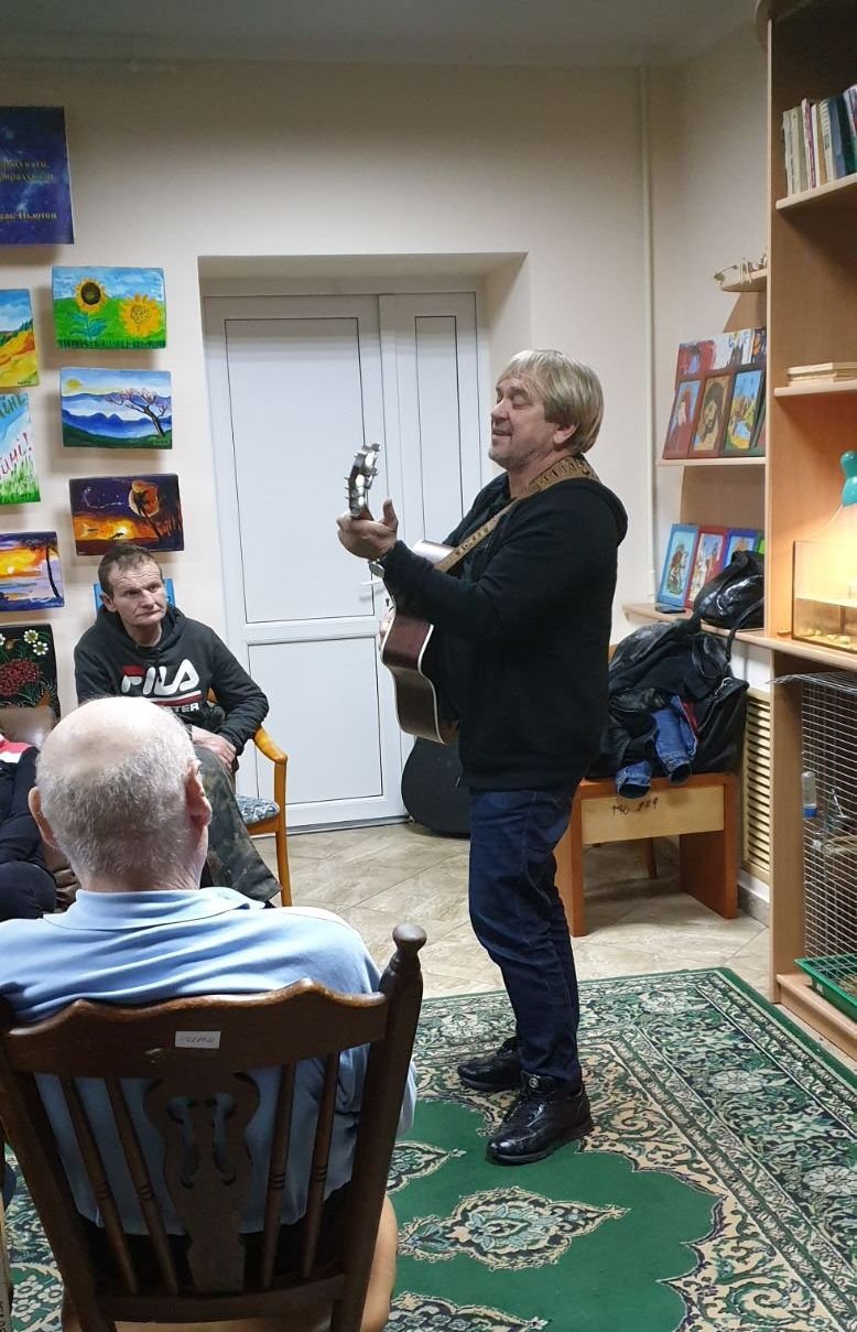 Щирими оплесками усі присутні на цій зустрічі нагородили артиста за пісні і за те, що він знайшов можливість приїхати в госпіталь та морально підтримати воїнів, що заліковують отримані на війні свої тілесні рани.