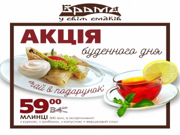 У будні в ресторації «Брама у світ смаків» діє акція на млинці.