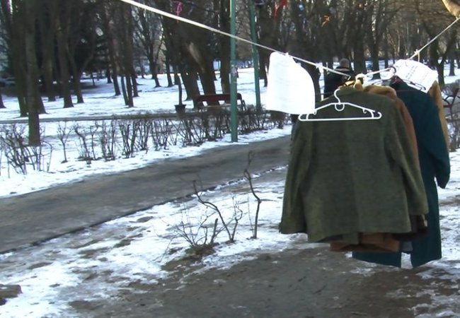 У Луцьку в парку невідомі благодійники розвісили одяг для нужденних. ВІДЕО