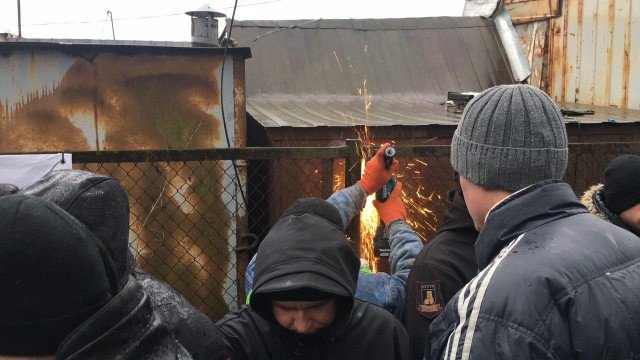 Близько 11:00 за допомогою електроінструменту муніципали почали зрізати паркан. Сутичок чи силових конфліктів на місці не було, більшість присутніх мовчки спостерігають за процесом демонтажу та не заважають.