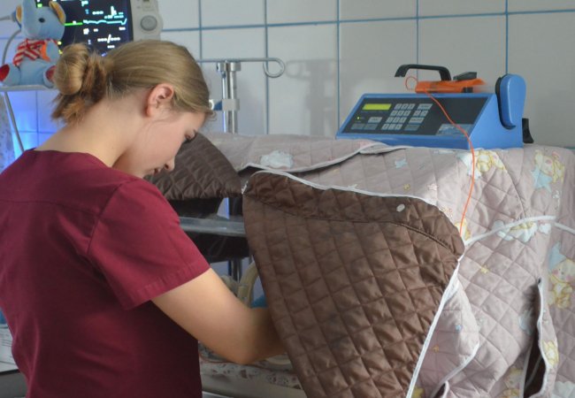 Завідувач відділення інтенсивної терапії новонароджених Віталій Богданович розповів, що на сьогодні у відділенні перебувають троє малюків, двоє з них – «поспішайки», які зараз важать 1,4 кілограма та 1 кілограм.
