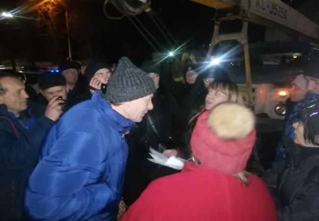 Станом на 19:20 на Центральний ринок приїхав автокран. За словами Юлії Сиротинської, за допомогою цієї техніки з вулиці Замкової хочуть забрати МАФ, який належить департаменту муніципальної варти.