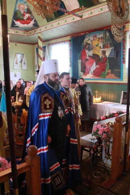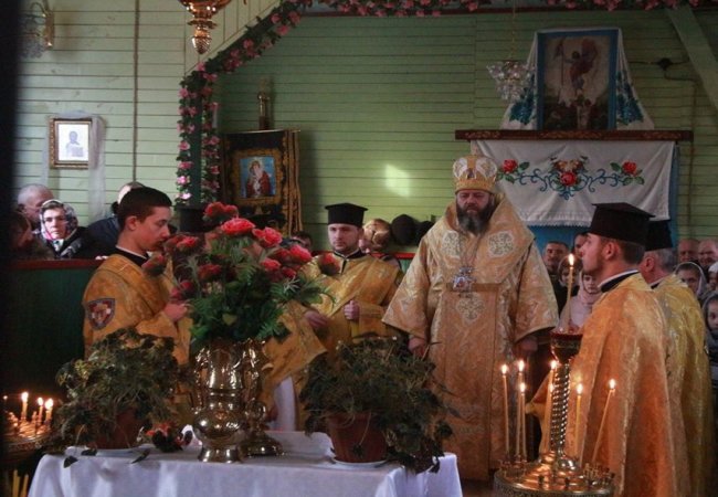 Владика Михаїл очолив божественну літургію у храмі. Разом із ним молилися декан протоієрей Тарас Манелюк, настоятель парафії священник Максим Подзізей, інше місцеве духовенство.