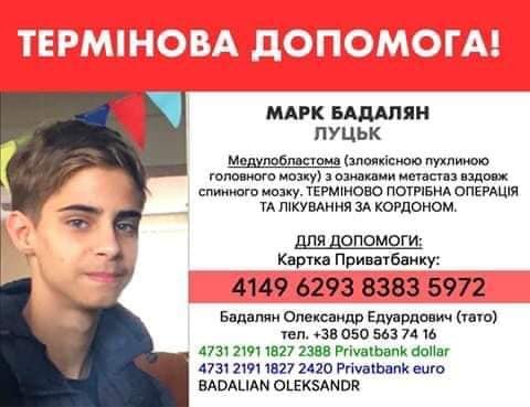 Двоє зовсім юних онкохворих хлопців потребують нашої - Олександр Ліщук та Марк Бадалян. Вони можуть одужати, але їхнє лікування надзвичайно дороговартісне і потребує значних коштів.