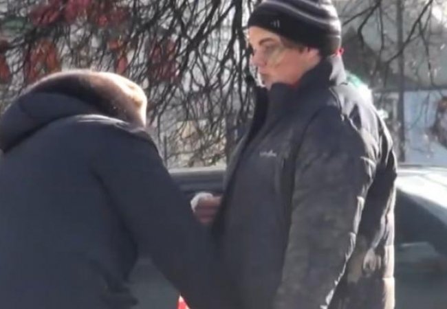 Деякі перехожі залишалися байдужими, а інші допомагали безпритульній та застібали їй куртку.