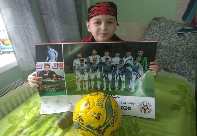 Футболісти «Волині» передали онкохворому хлопчику м`яч та календар з автогрaфами. ФОТО