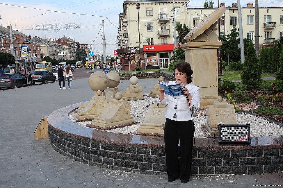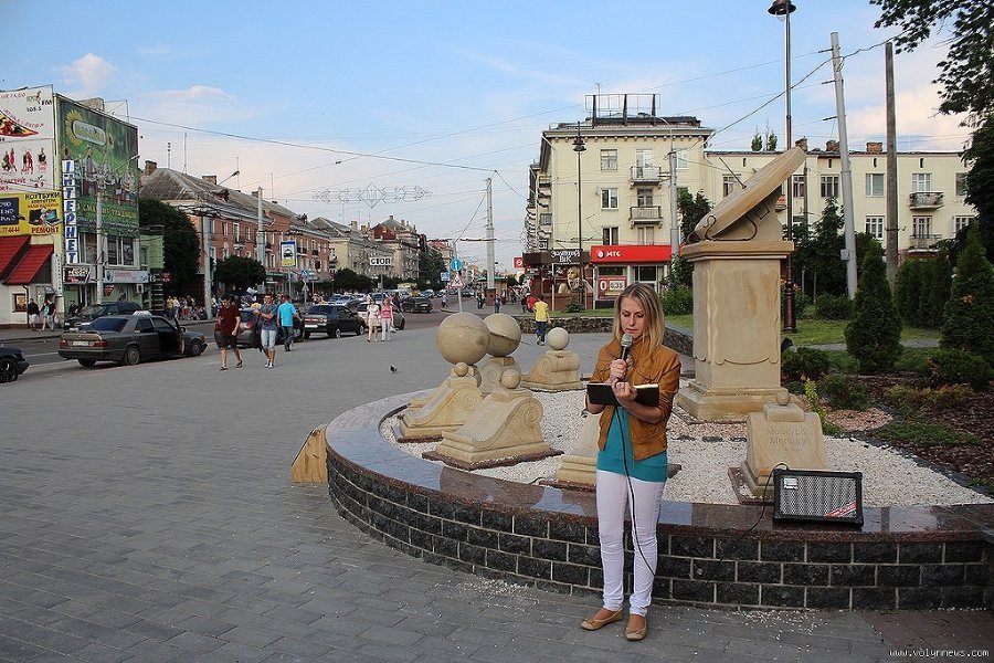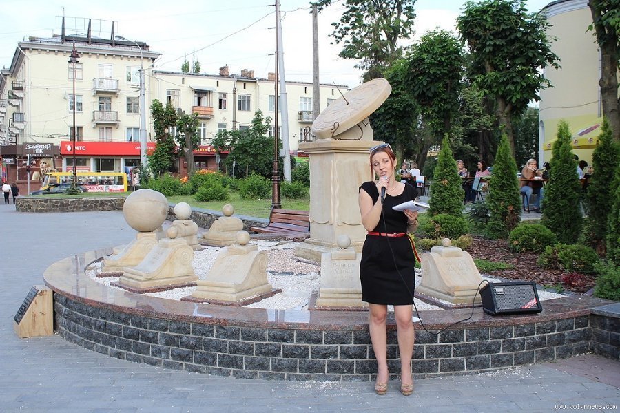 Поділитися своїми творами з публікою зголошувалися не лише лучани. Так, поетеса з Ківерців Альона Саховська зізналася, що не знала, який формат матиме акція та навіть не одразу відшукала сонячний годинник. Декламувати поезії на майдані їй довелося вперше, тому перед виступом хвилювалася.