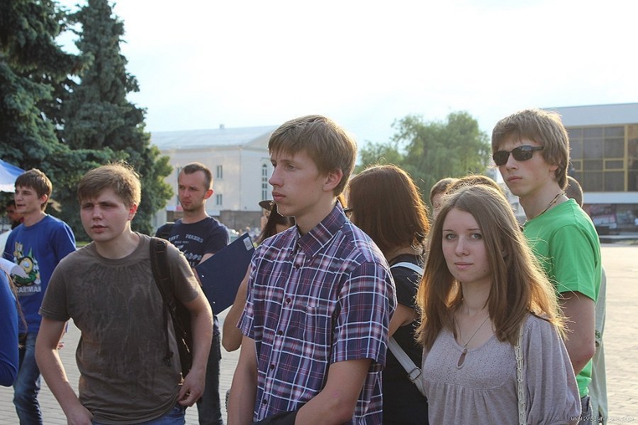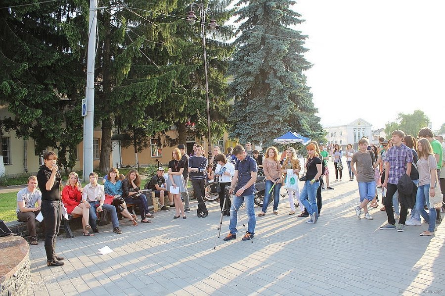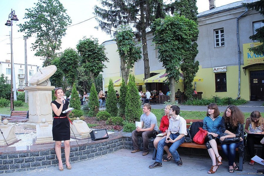 Культурне об’єднання «100 Вт» організувало захід біля сонячного годинника на Театральному майдані. Мета організаторів проекту ‒ повернути поезію з кав’ярень, квартир та бібліотек на площі, «як за славетних часів Маяковського».