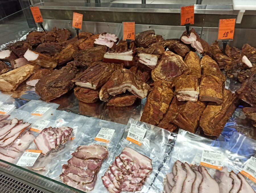 «Ми коптимо м’ясо, курку, язики, філе, ковбаси… Загалом у нас є 60 позицій копчення», - розповіли у гіпермаркеті.